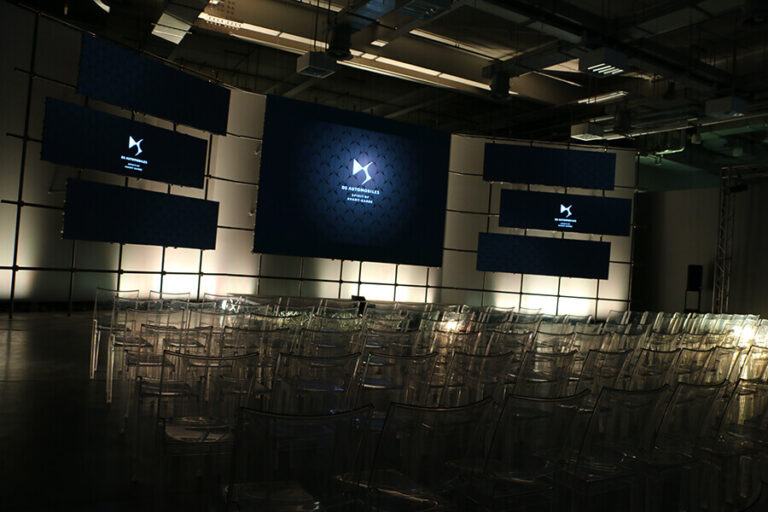 Durante un evento importate come il National Dealer Meeting, il tempo non è mai abbastanza, soprattutto per cambiare scenografia tra una riunione e l’altra. Per l’allestimento del grande spazio a disposizione, è stata realizzata una scenografia costituita da un fitto intreccio di tubi Innocenti per sorreggere le ampie superfici ledwall. E’ stato poi sfruttato il potere delle luci, che hanno decorato ad hoc la sala durante il susseguirsi delle riunioni dei diversi brand PSA con i loro tipici colori.